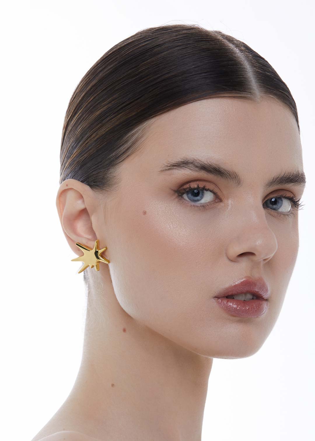 Brinco médio com design de estrela orgânica e abstrata, que traduz a essência da coleção