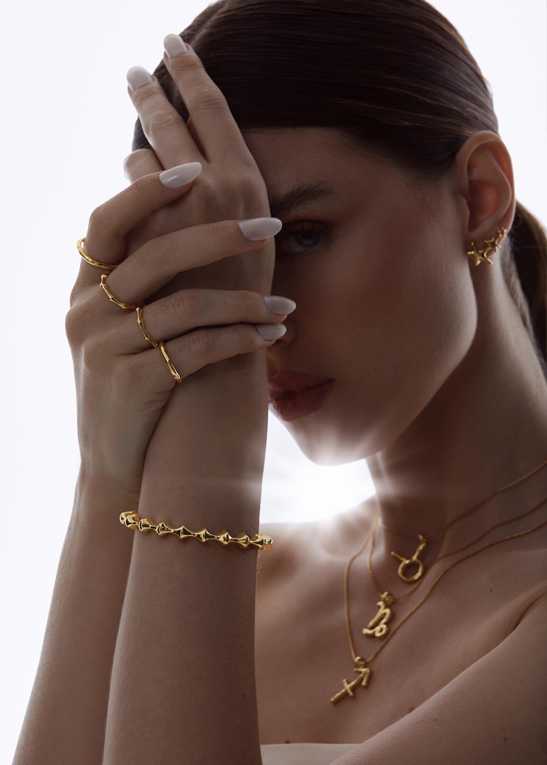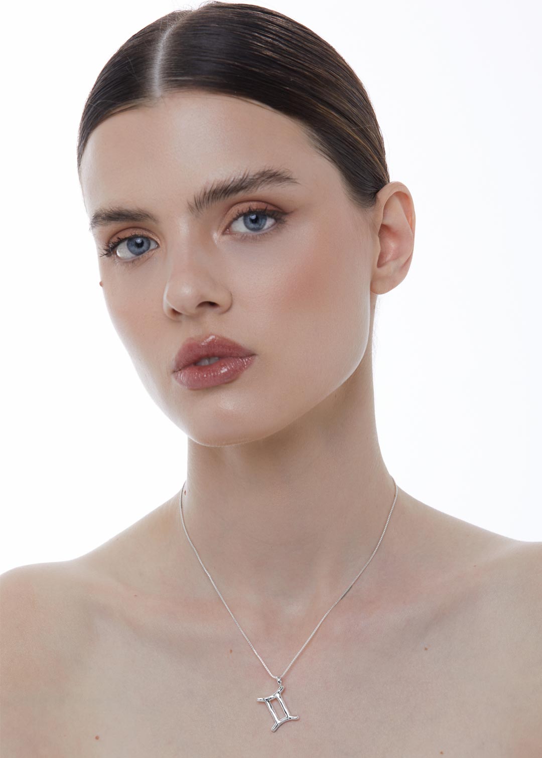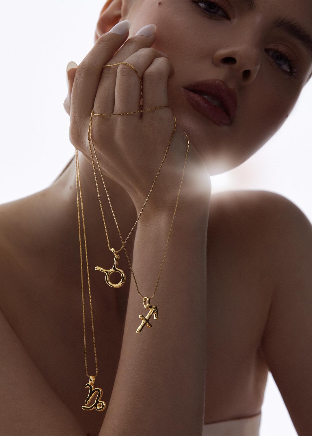 Colar com pingente de signo que traduz a proposta da coleção Lúmen: celebrar a personalidade, o astral e a luz única de quem usa.