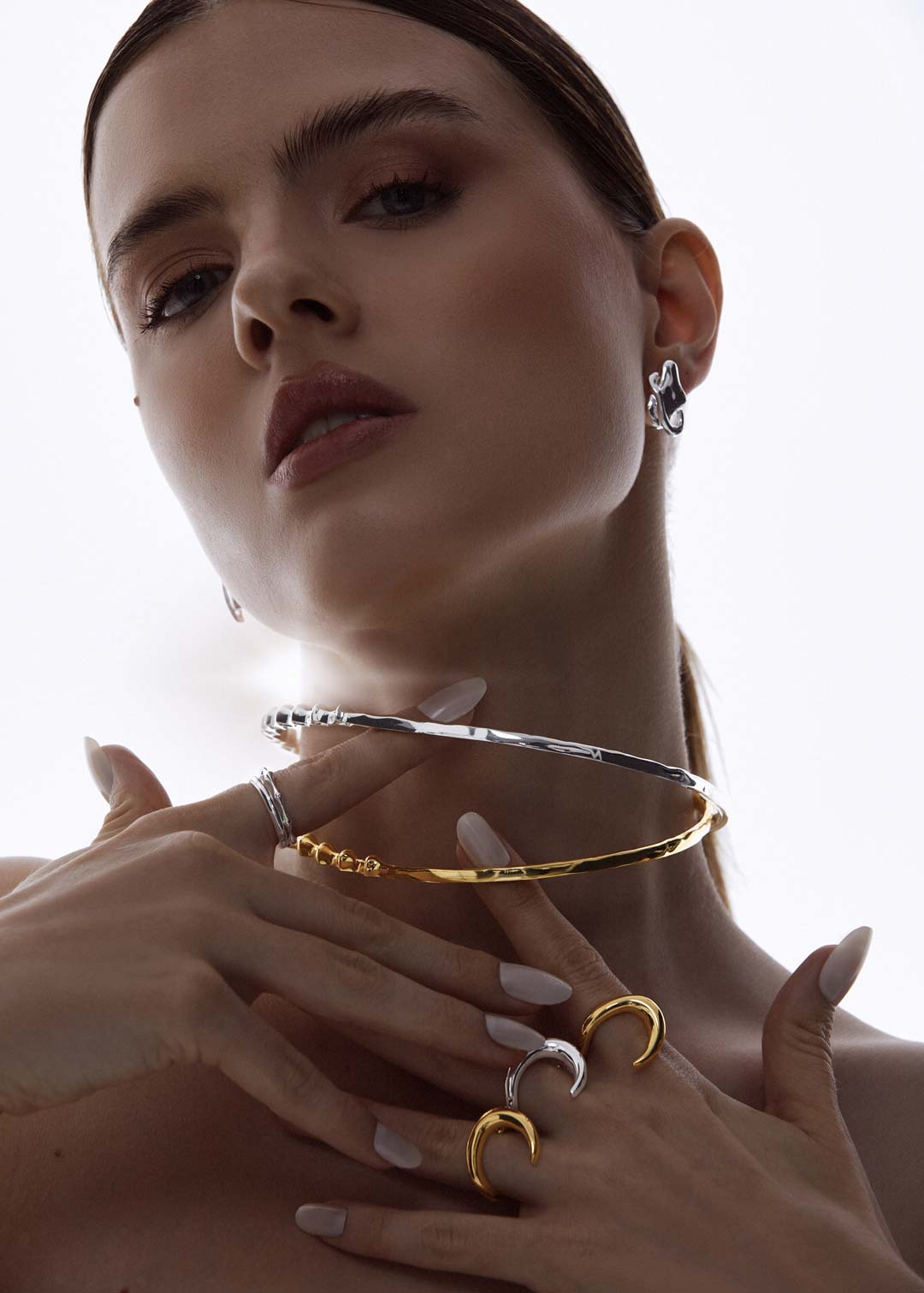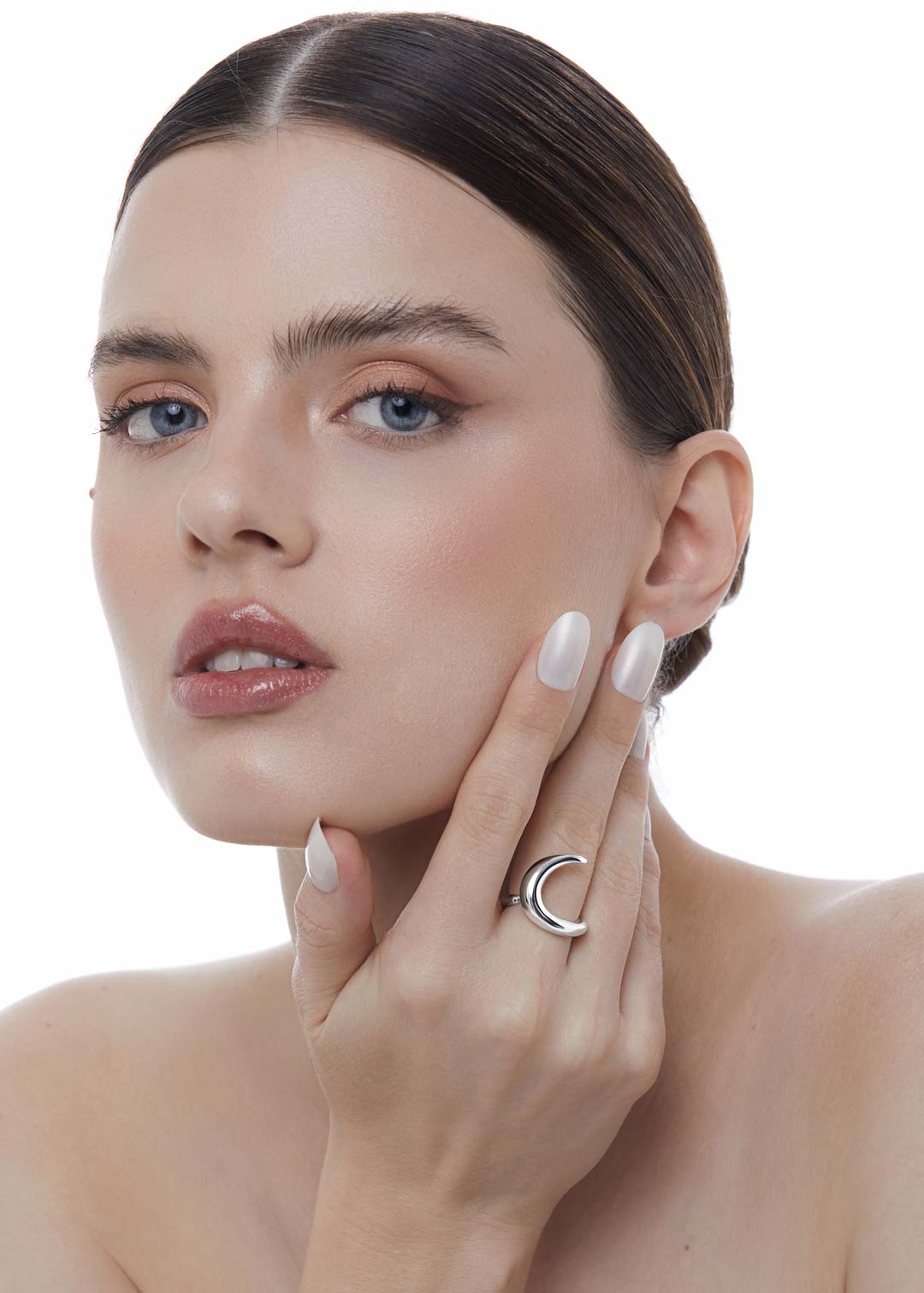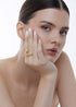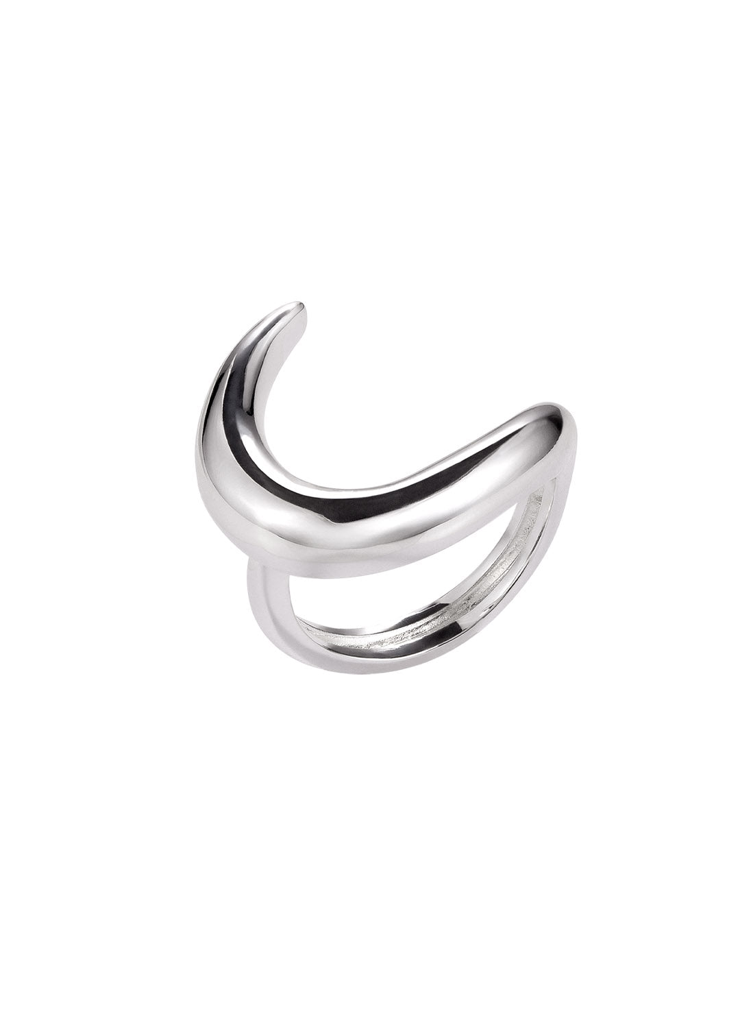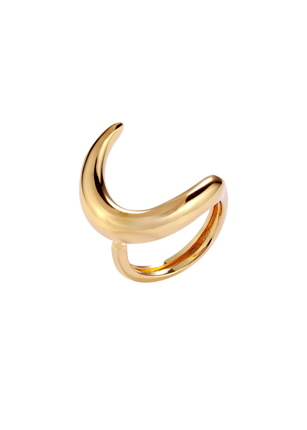Minimalista e atemporal, o Anel Lua Lúmen traz uma lua abstrata que abraça o dedo com