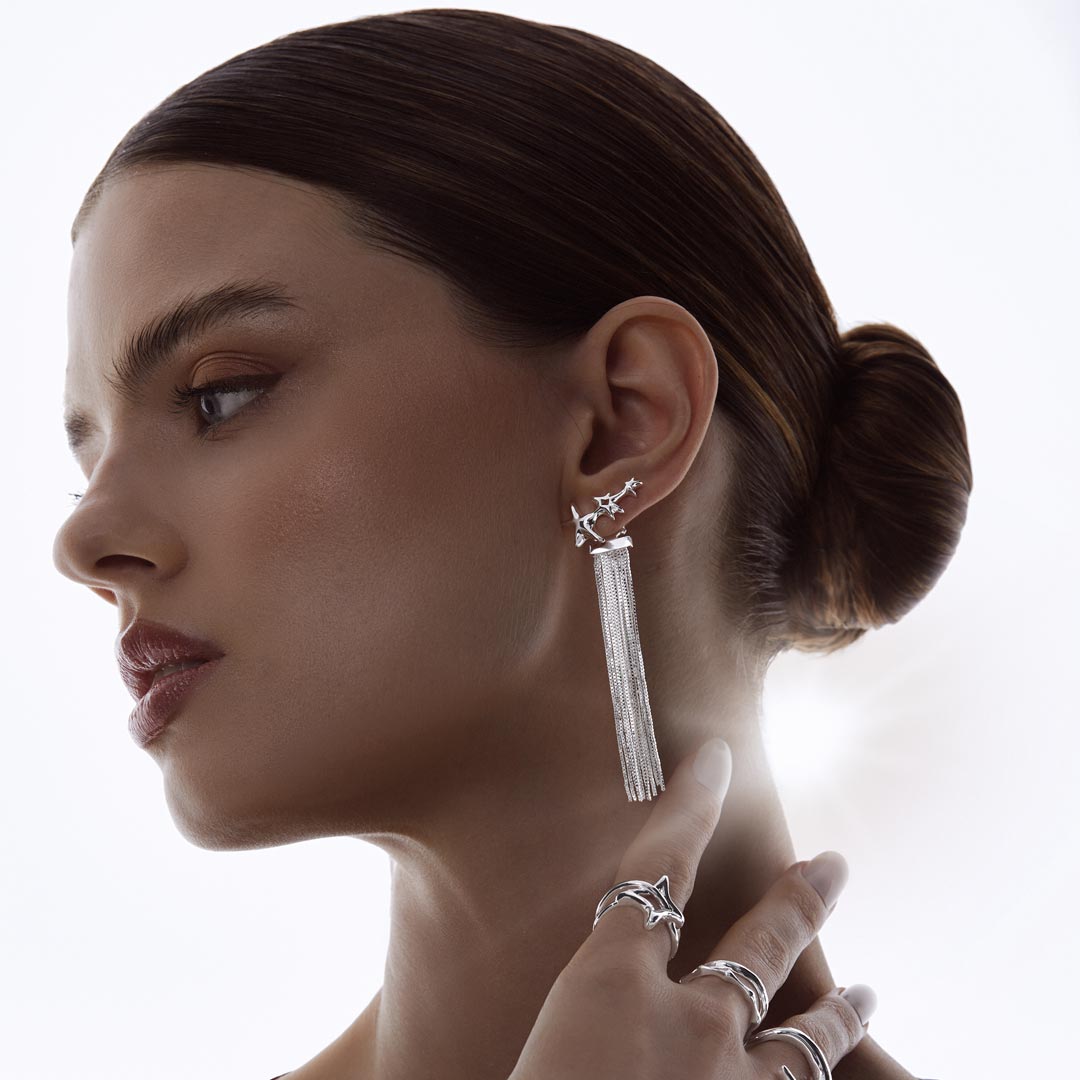 Franja desmontável feita na tarraxa, perfeita para transformar qualquer brinco em uma peça com mais brilho e movimento.