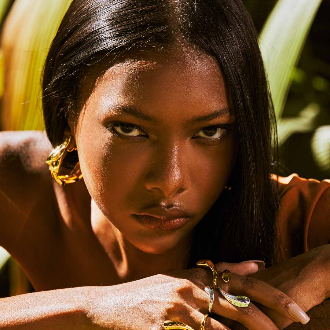 A Argola Descoberta captura a vivacidade da vida aquática amazônica com um design que apresenta um cardume de peixes em movimento fluido.