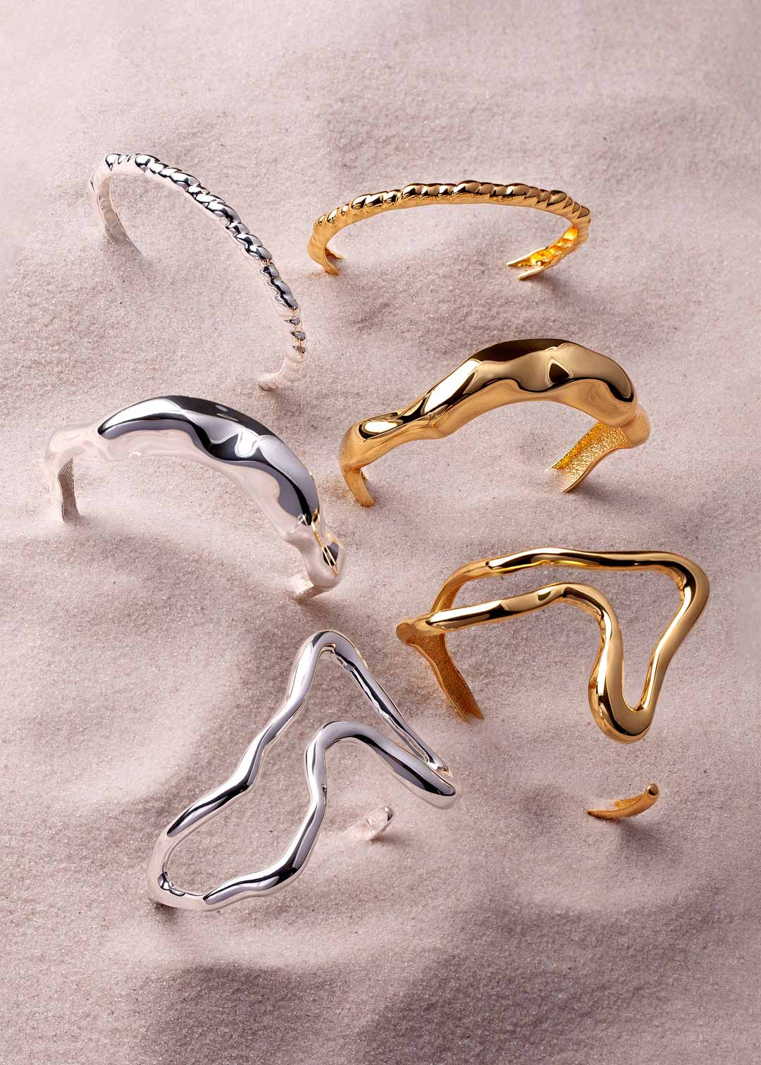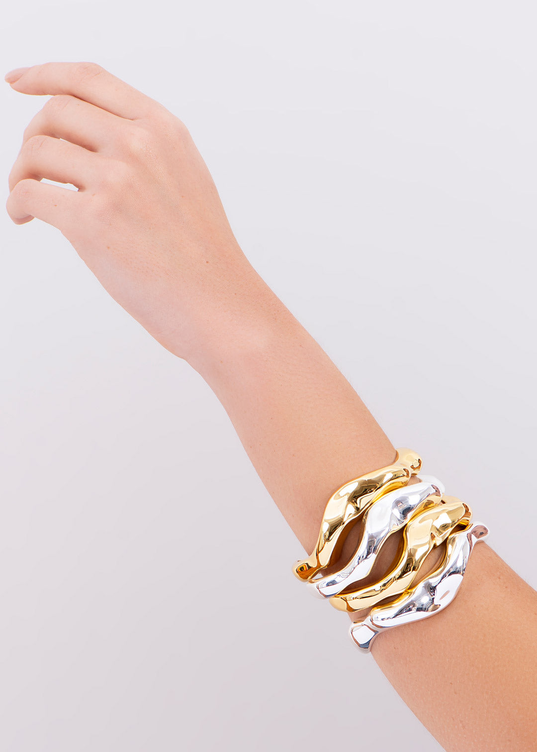 Imponente e singular, este bracelete traduz em seu design orgânico o fluxo