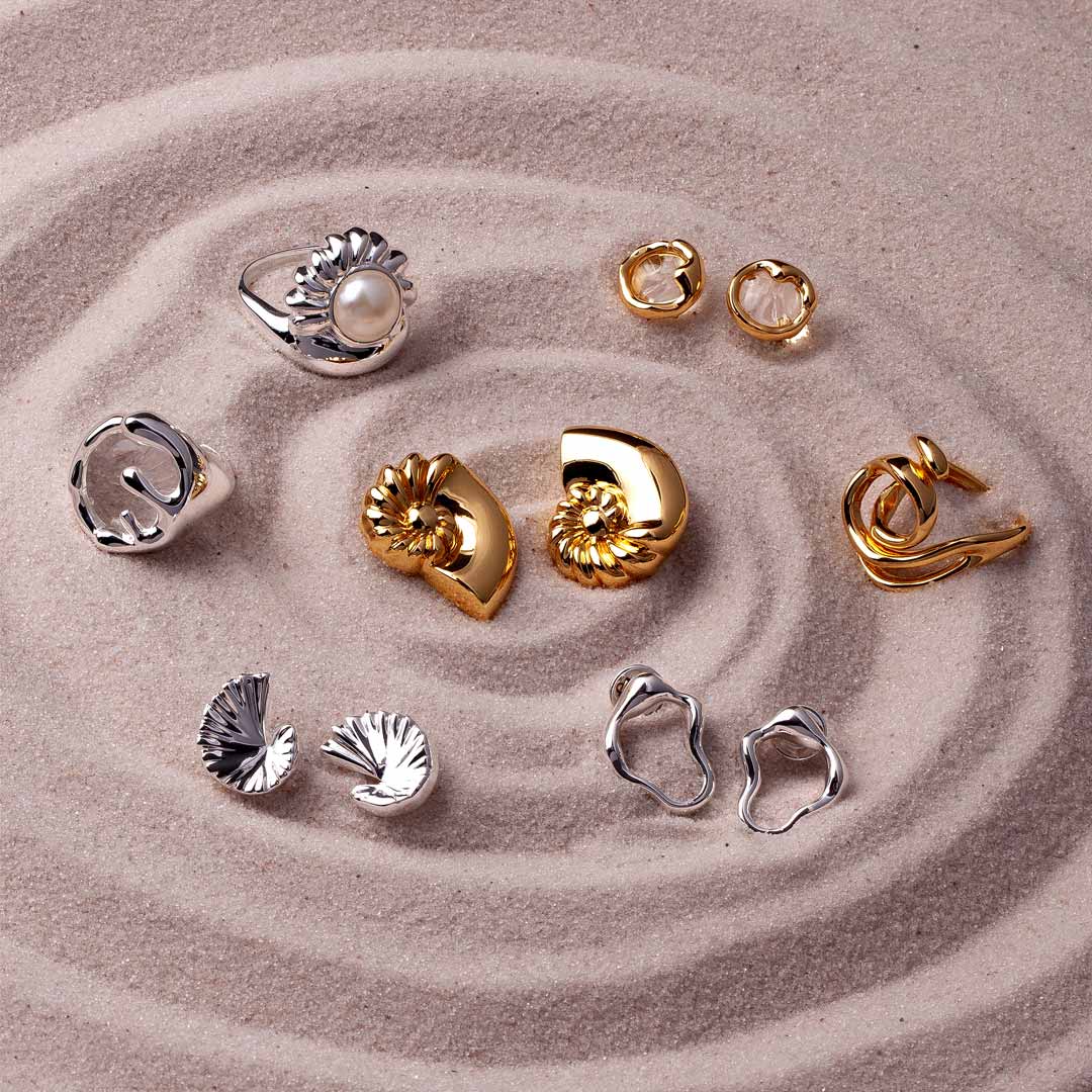 A concha ganha forma neste design que abraça delicadamente o lóbulo da orelha.