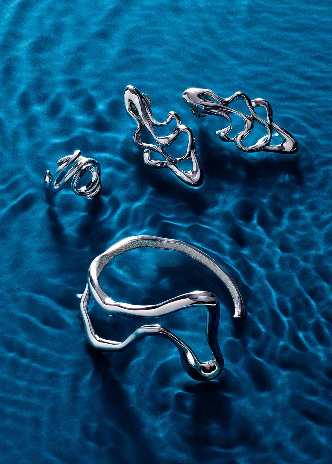 Profundo e imponente como as águas em movimento, este brinco traduz a força silenciosa  do mar.