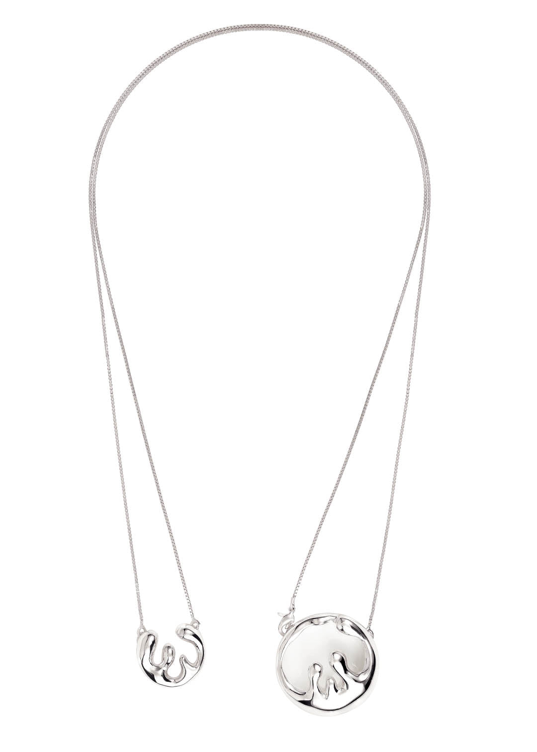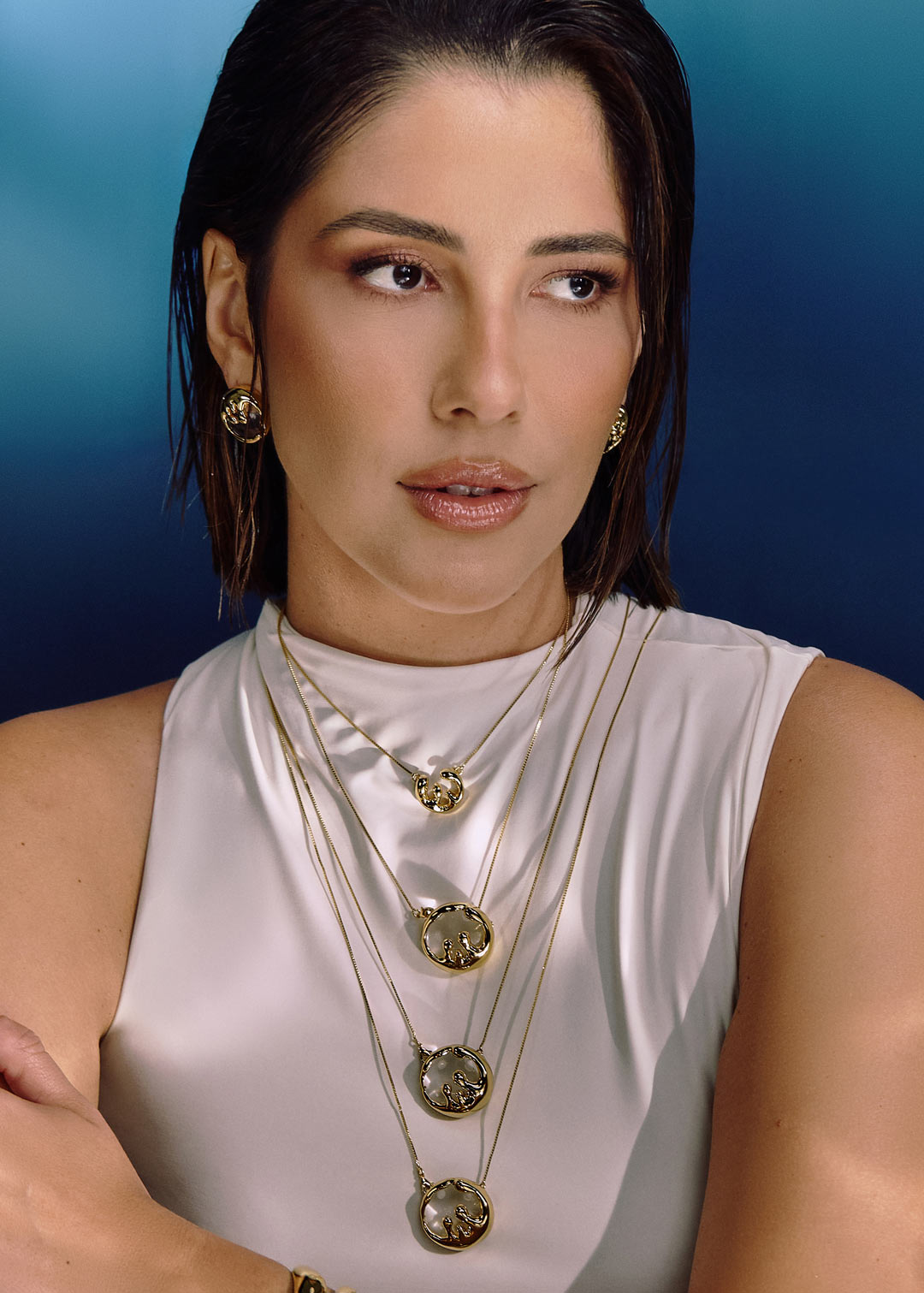 Assim como as águas que se movem em diferentes direções, este escapulário carrega dois  pingentes que dialogam entre si.