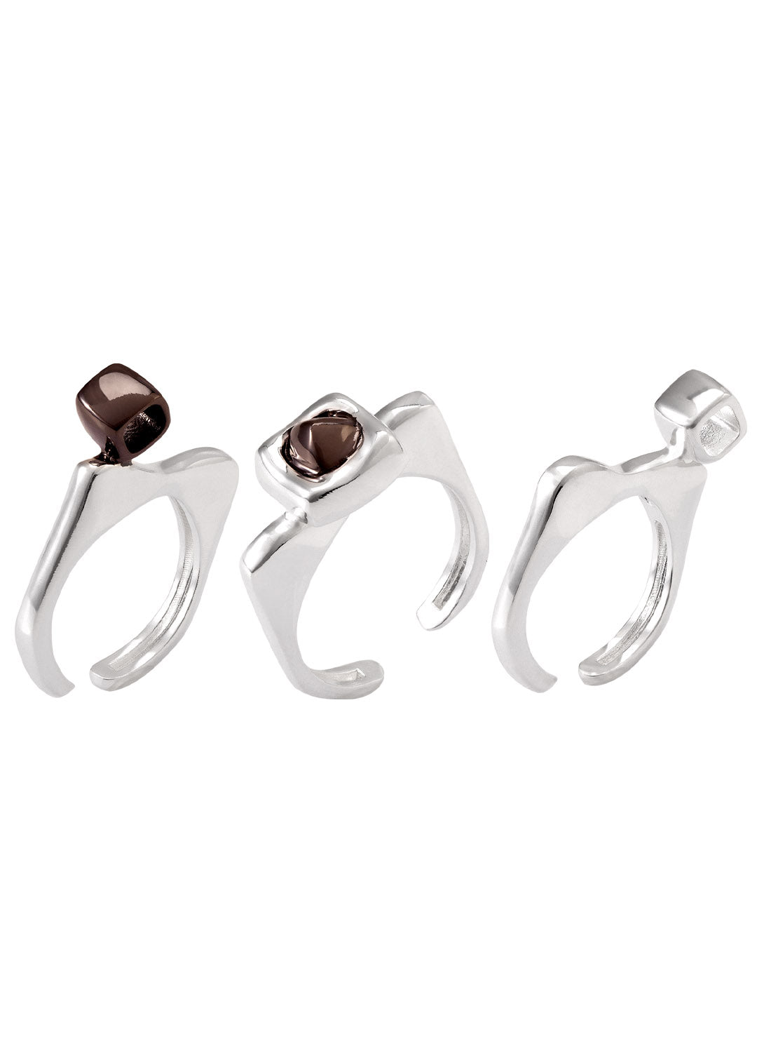 O Anel Cubo Triplo Revolução é formado por três alianças finas, cada uma com 3 mm de