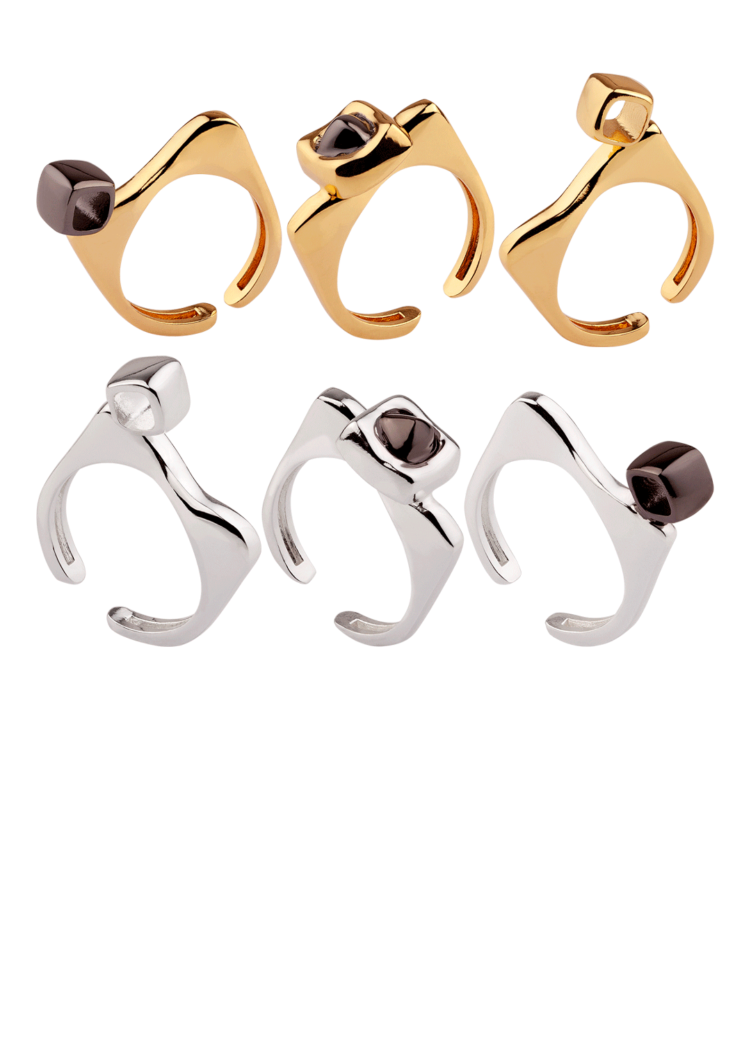 Trio de Anéis Cubo Bicolor Revolução - DOURADO